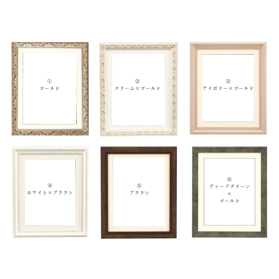 ご希望のフレームデザインを画像4〜10枚目でご確認いただき、オプションでご指定ください。