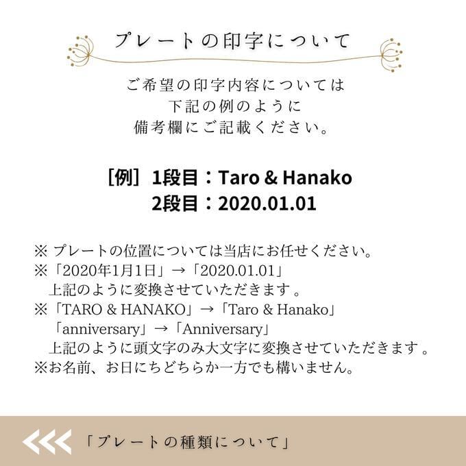 必要な方はオプションでプレートのカラーをお選びいただき、印字内容は商品をカートに入れたあとで備考欄にご記入ください。