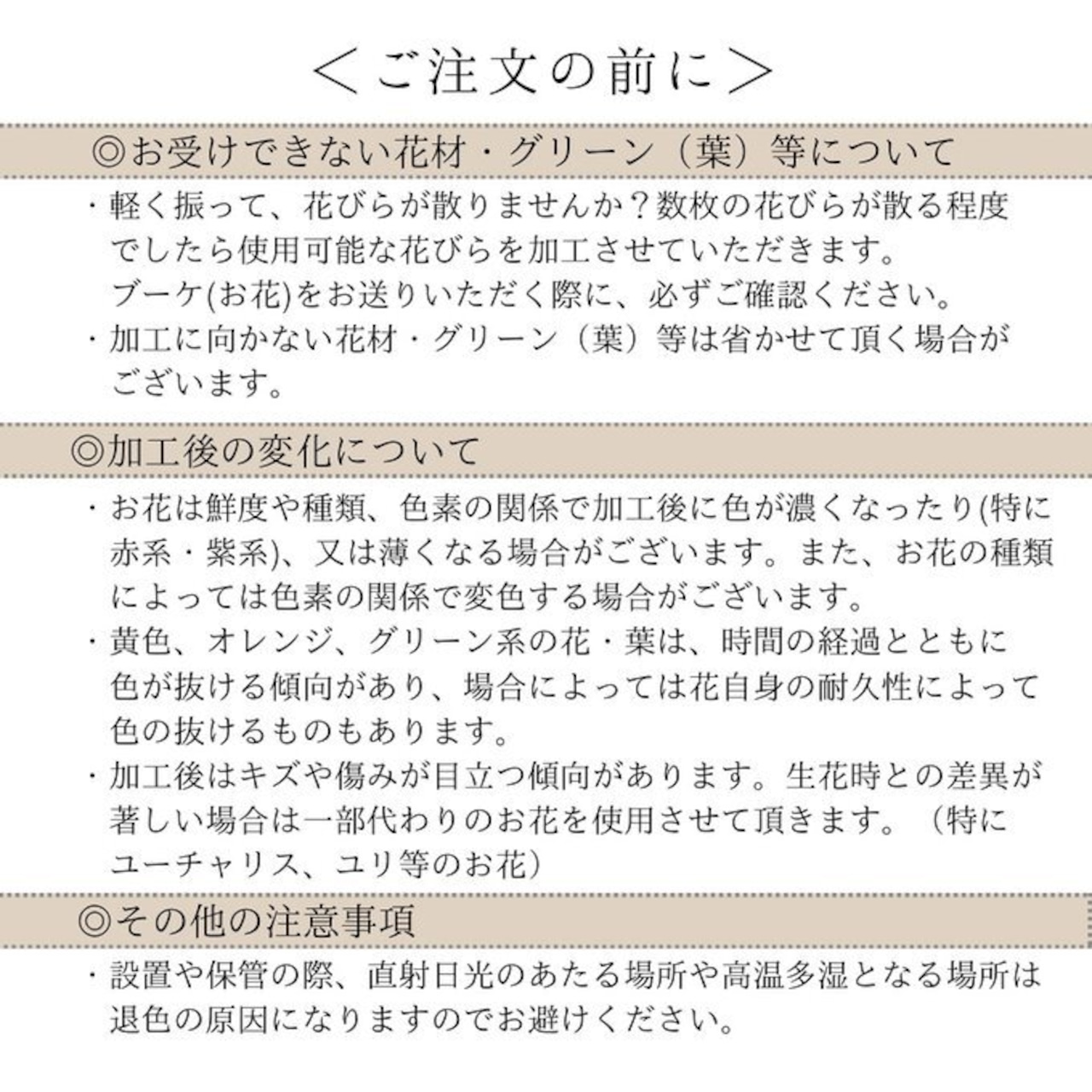 ※お花や完成作品をSNS等でご紹介させていただくことがあります。お名前などの個人情報は載せません。掲載を希望されない場合はご注文時にお知らせください。
