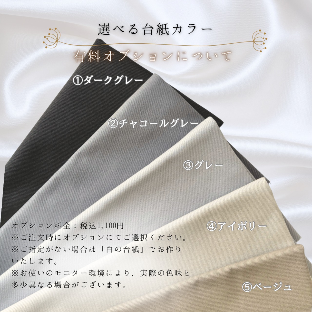 台紙は白(無料)を基本に、以下の5色からお選びいただけます。